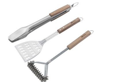 Grilling tools should be made of durable materials such as stainless steel, as it is easy to clean and has good heat resistance.