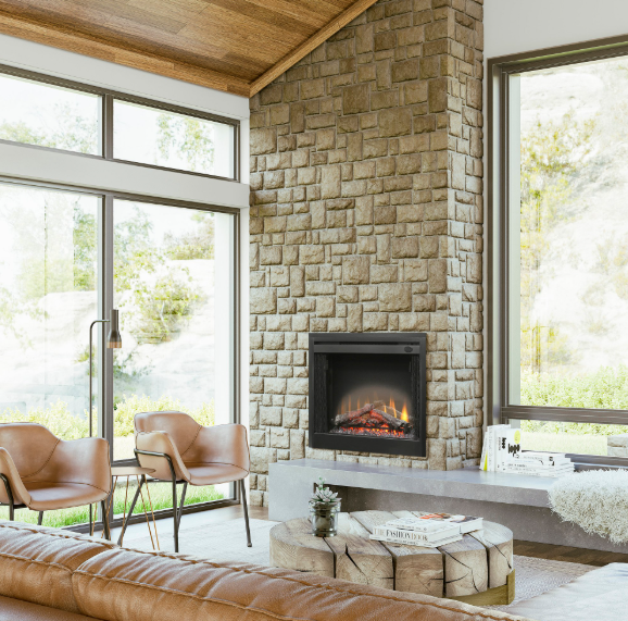 The BFSL33 Slim Line Built-In Firebox, featuring Dimplex's patented realistic flame effect and 100% LED lighting, offers an unparalleled blend of style, versatility, and efficiency. With a generous 738 sq. inch viewing area, this fireplace enhances any room with its removable trim kit, mesh screen, and convenient remote control. Designed to fit virtually anywhere, even where traditional combustion fireplaces can't, the BF Series fireboxes not only meet design challenges but also add significant value with their exceptional realism and economical operation. Costing less than a cent per hour to operate the flame only and 7 cents per hour with heat, it includes a fan-forced heater capable of warming spaces up to 400 square feet. The included three-stage remote control allows for easy adjustment of both heat and visual settings, ensuring comfort and ambiance at the touch of a button.